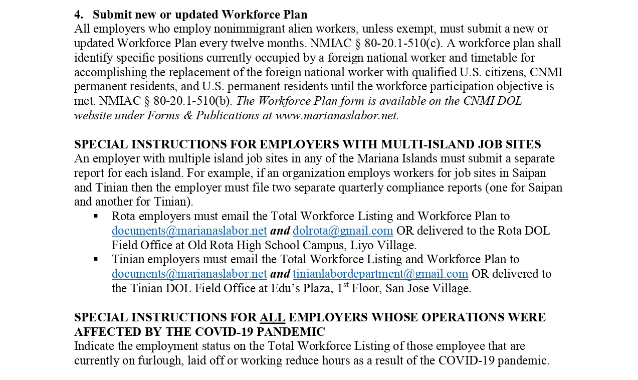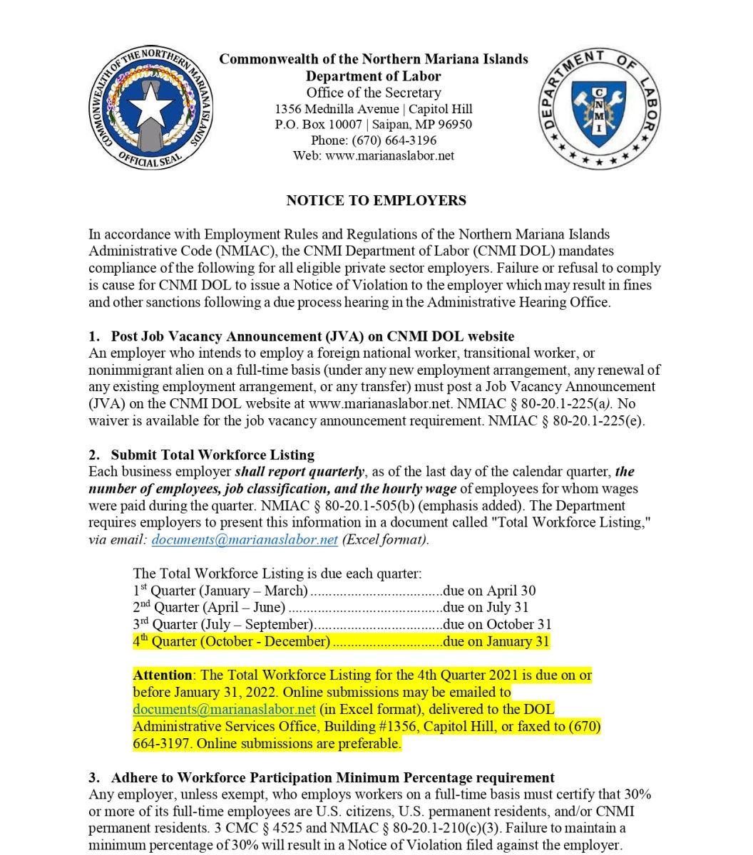 Employers are advised to sign up and post new Job Vacancy Announcements in https://jobs.labor.cnmi.gov/jobs
