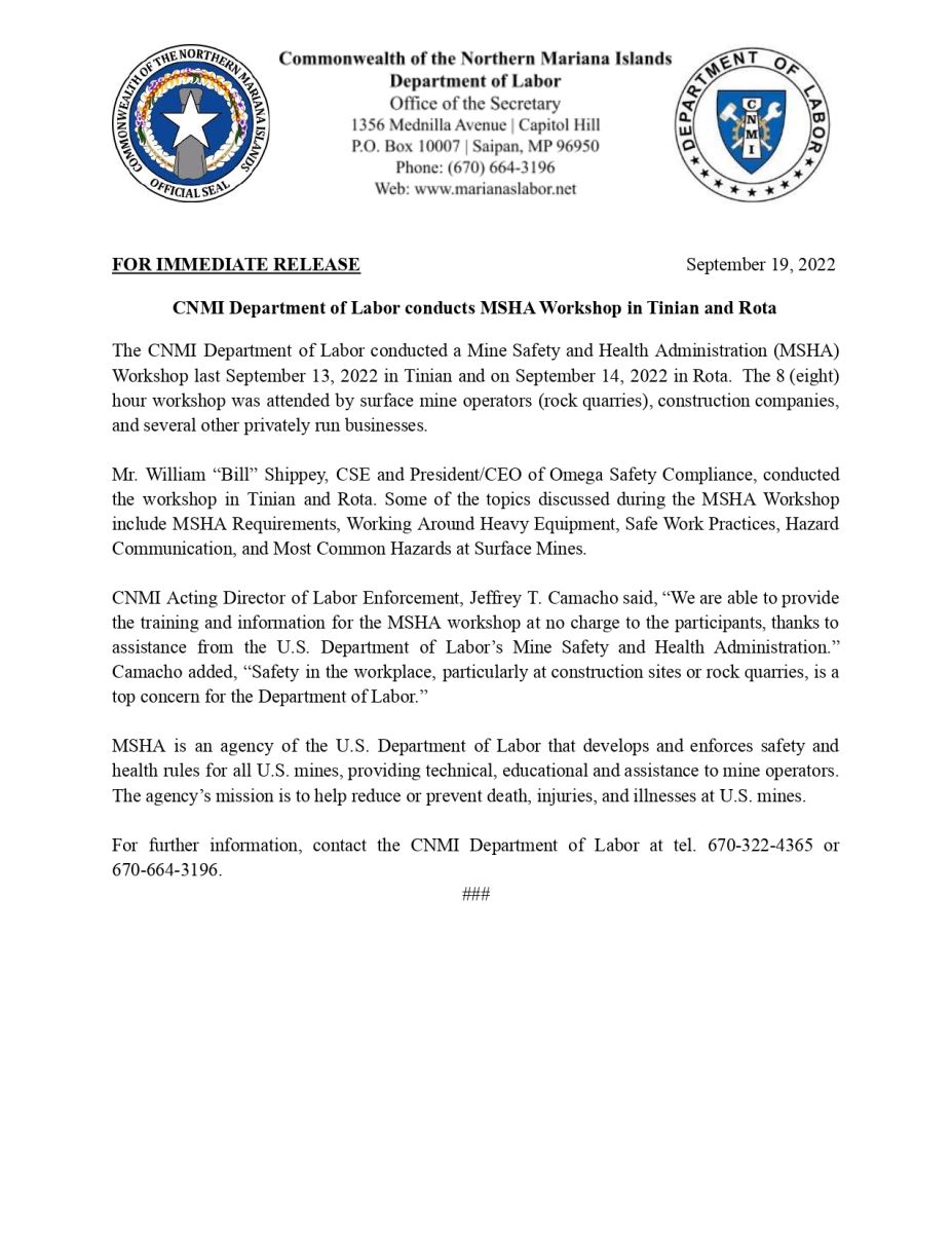 Justine Callahan (Safety and Occupational Health Manager, OSHA), and Vicky Benavente (CNMI Secretary of Labor).